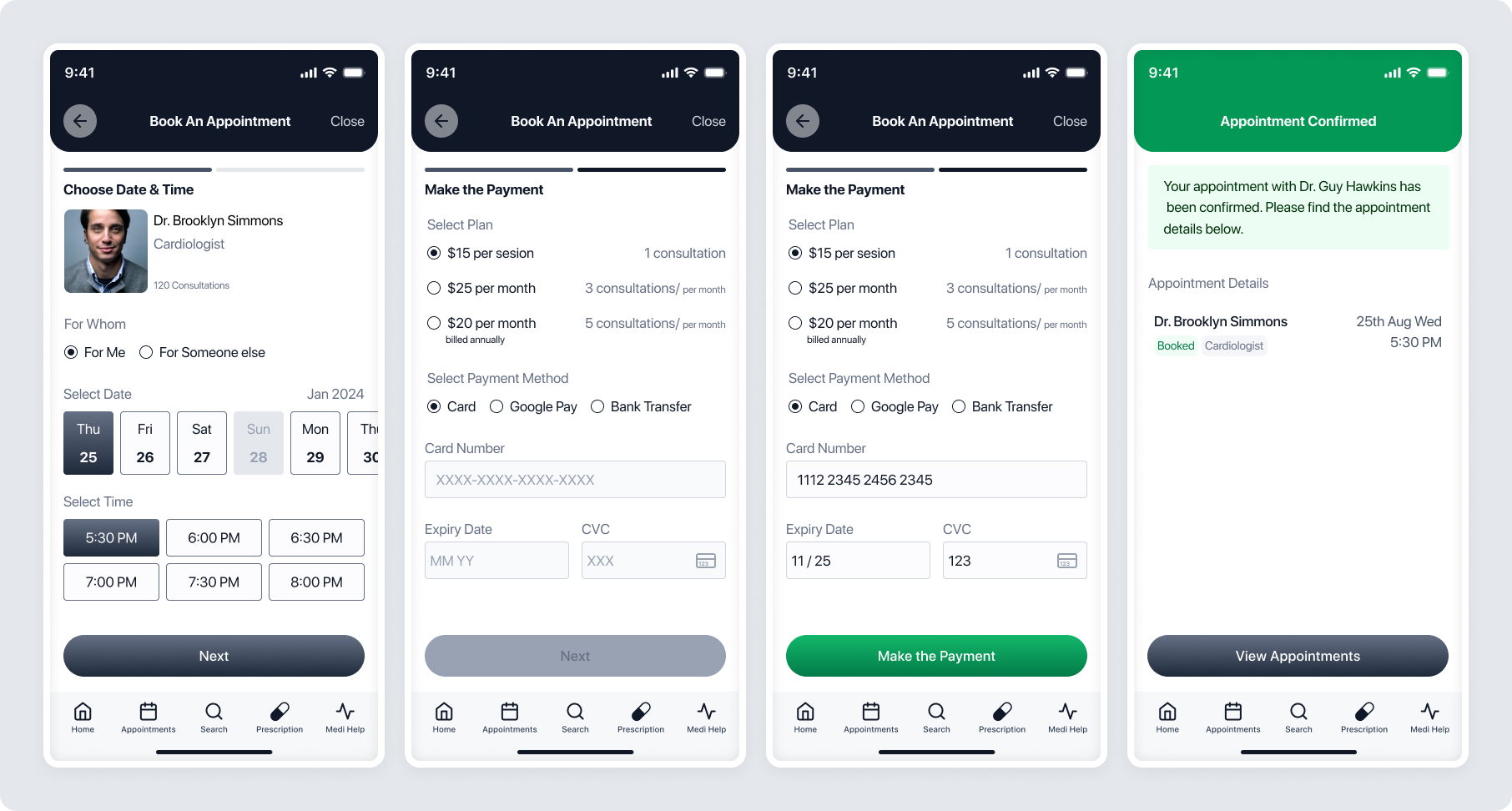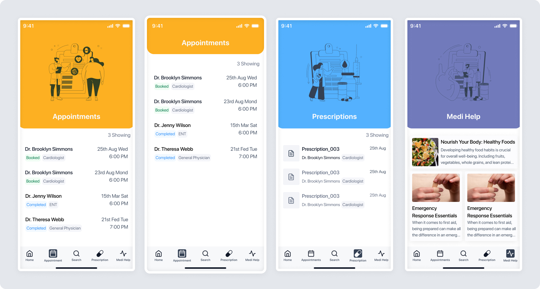 The final outcome is a fully conceptualized mobile app that offers seamless online consultations and prescription services. Doc Now demonstrates a smooth user experience, secure and intuitive workflows, and a modern interface that makes accessing healthcare fast, simple, and convenient.